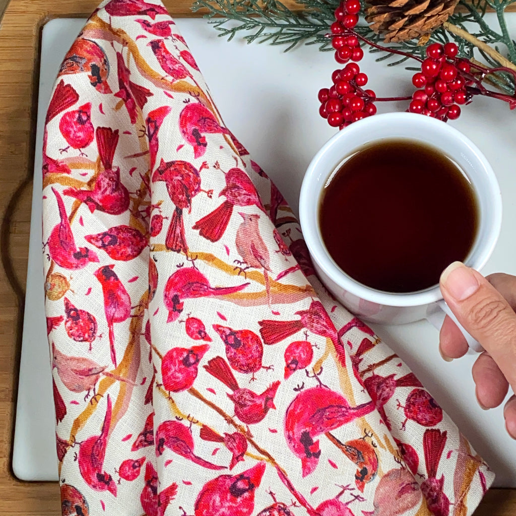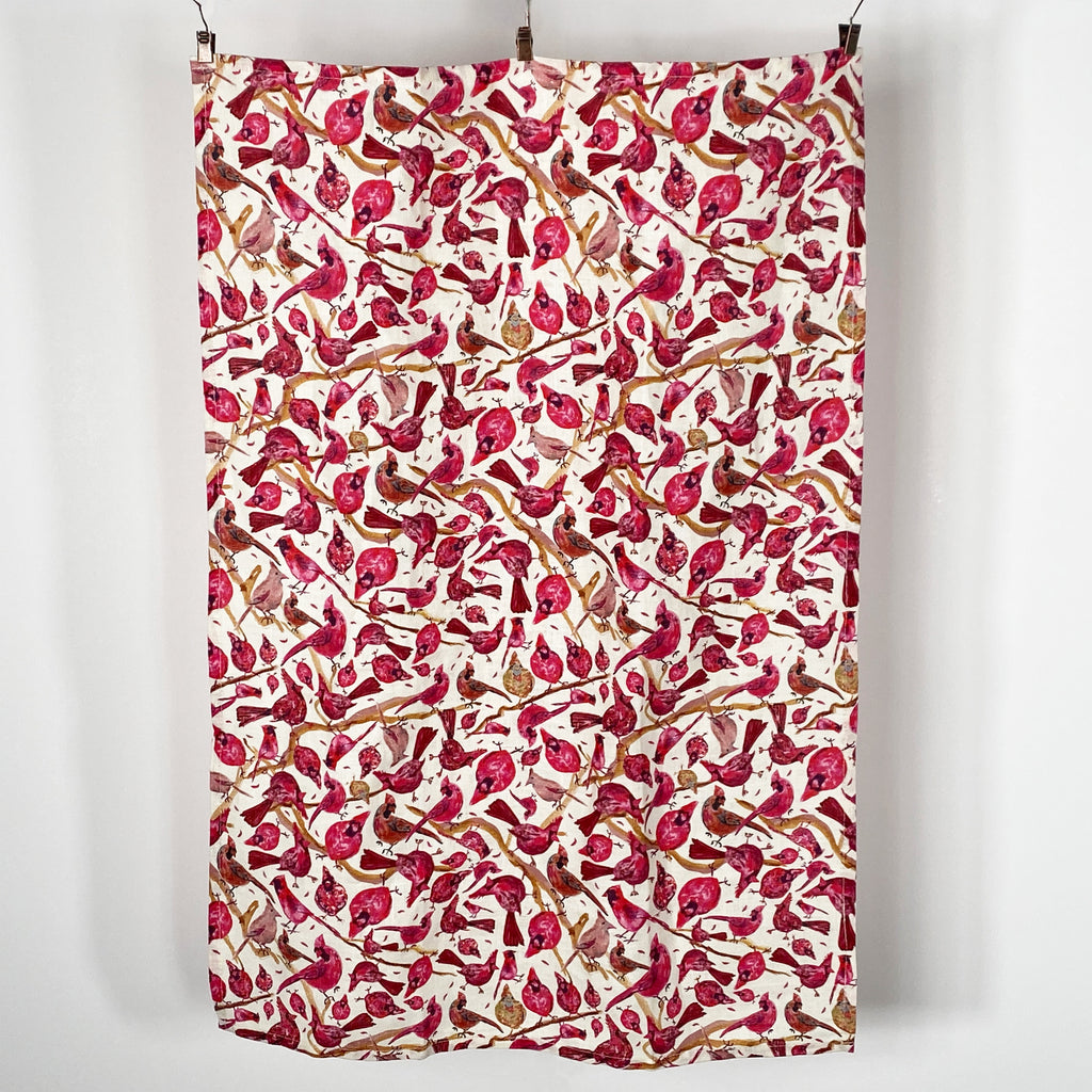 JADE CARDINALS - also available, a limited-time gorgeous holiday green and red colorway of this viory tea towel (last image shown).